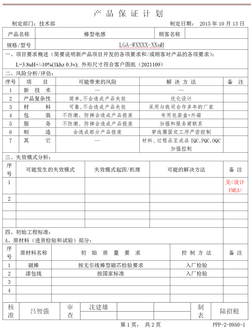 控制計(jì)劃(試生產(chǎn)階段)范例