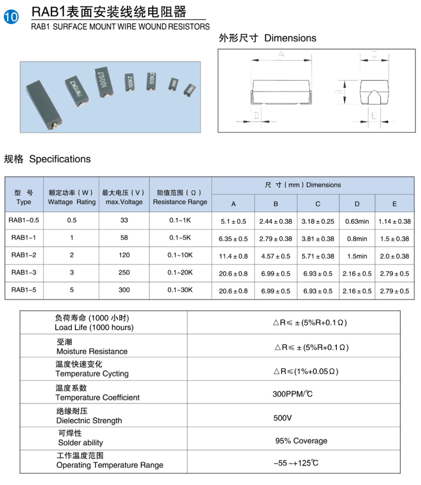 > RAB1表面安裝線繞電阻器